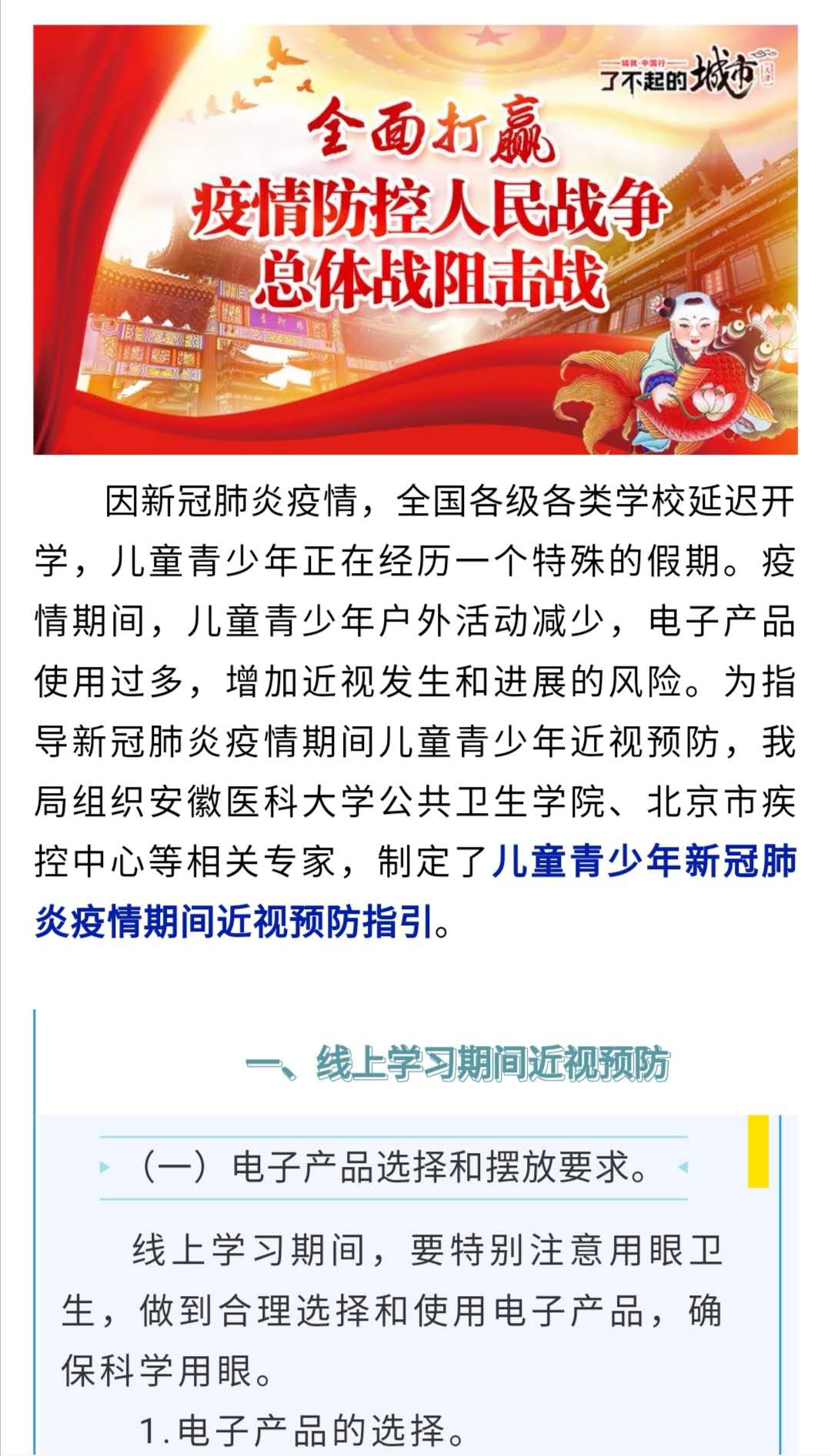疫情期间儿童青少年近视如何预防
