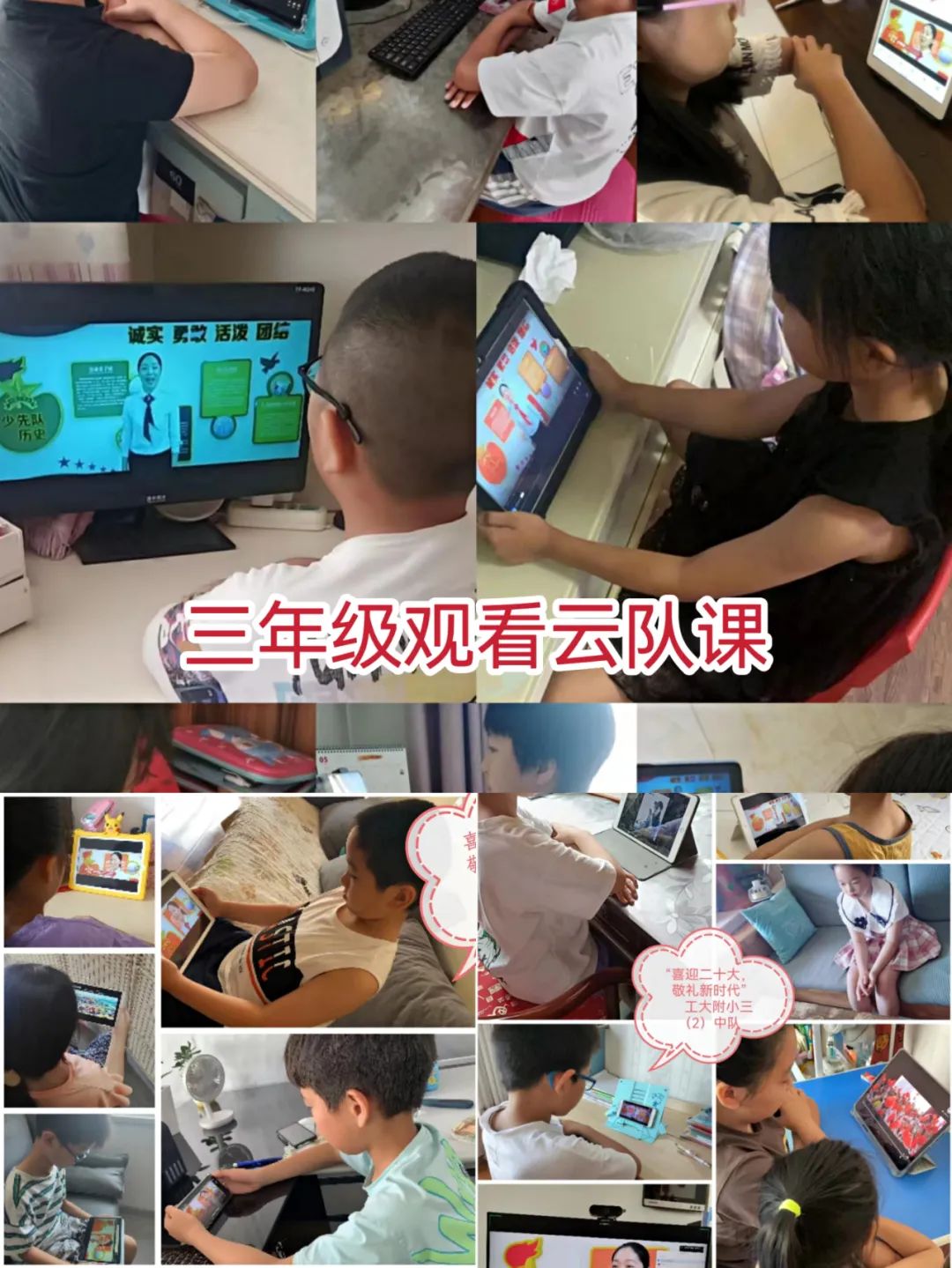 为深化“六一”作为少先队重大节庆日的教育内涵,教育引导广大少先队员从小坚定听党话、跟党走的决心,以实际行动迎接党的二十大胜利召开,我校在六一儿童节这个欢庆的日子里,组织全体队员观看共青团中央、全国少工委和团市委、市少工委组织开展的两场“喜迎二十大,争做好队员”主题云队课直播活动。