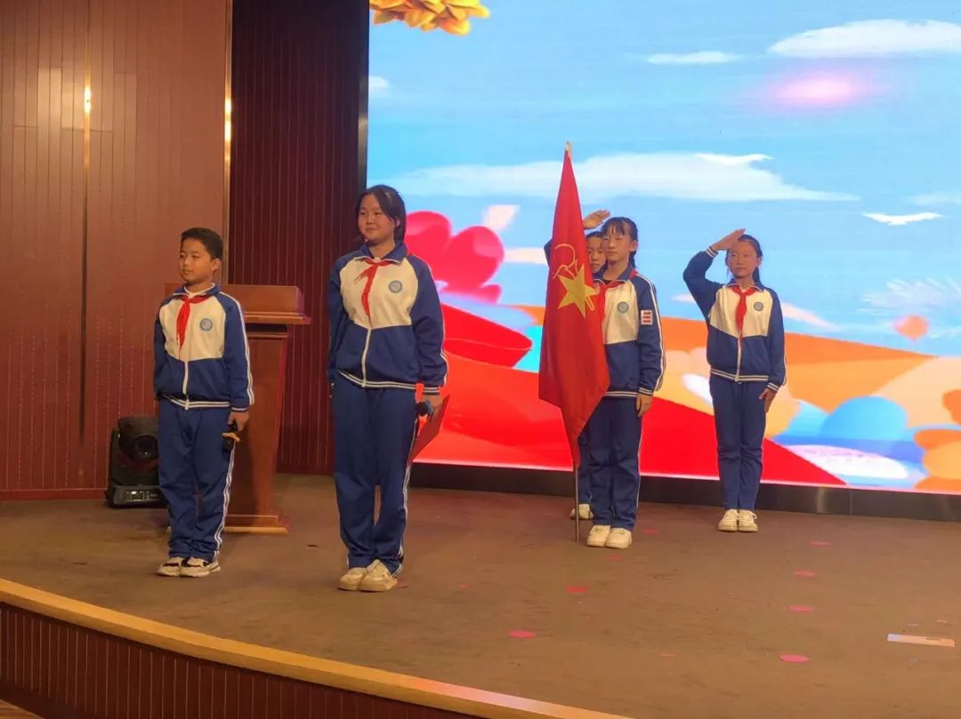 少先队的队旗是少先队组织的标志。队旗寓意着中国少年先锋队在中国共产党的领导下,向着光明的未来前进。伴随着有力的出旗曲,旗手与护旗手步伐整齐、精神抖擞。